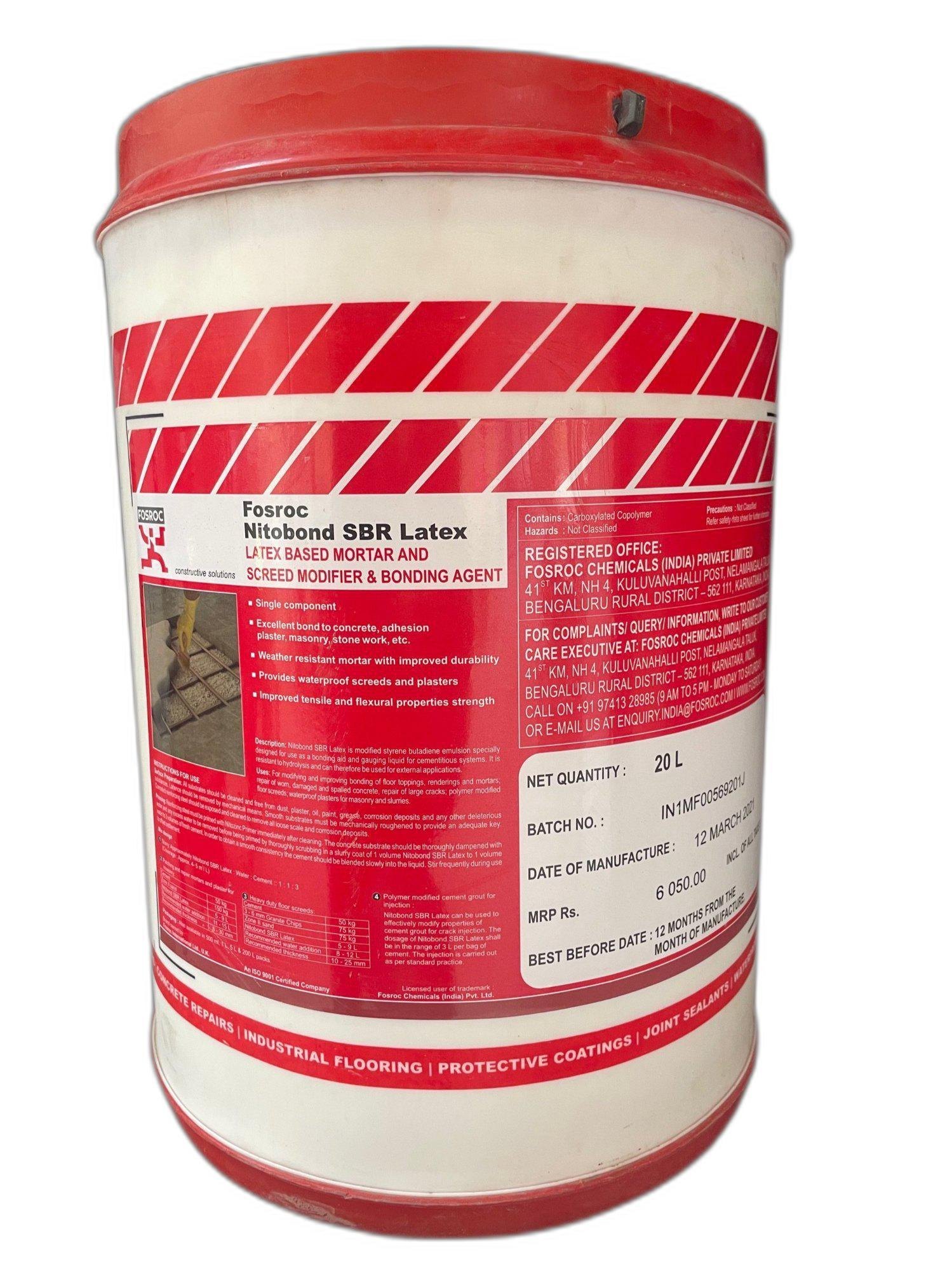 Nitobond SBR(Latex) is modified styrene butadiene emulsion specially designed for use as a bonding aid and gauging liquid for cementitious systems. It is resistant to hydrolysis and can therefore be used for external applications too. For modifying and improving bonding of floor toppings, renderings and mortars; repair of worn, damaged and spalled concrete, repair of large cracks; polymer modified floor screeds; waterproof plasters for masonry and slurries.